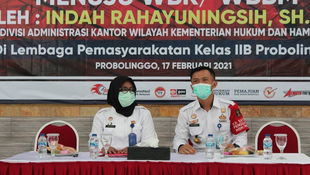 PROBOLINGGO - Rabu (17/02), Kepala Divisi Administrasi Kantor Wilayah Kementerian Hukum dan HAM Jawa Timur, Indah Rahayuningsih mendatangi Lapas Kelas IIB Probolinggo untuk memberikan arahan dan penguatan Pembangunan ZI menuju WBK / WBBM Tahun 2021. Tidak datang sendiri, Indah Rahayuningsih ditemani oleh Kepala Bagian Umum, Dewi Atmi Listyorini serta Kepala Bagian Program dan Hubungan Masyarakat, Meirina Saeksi.